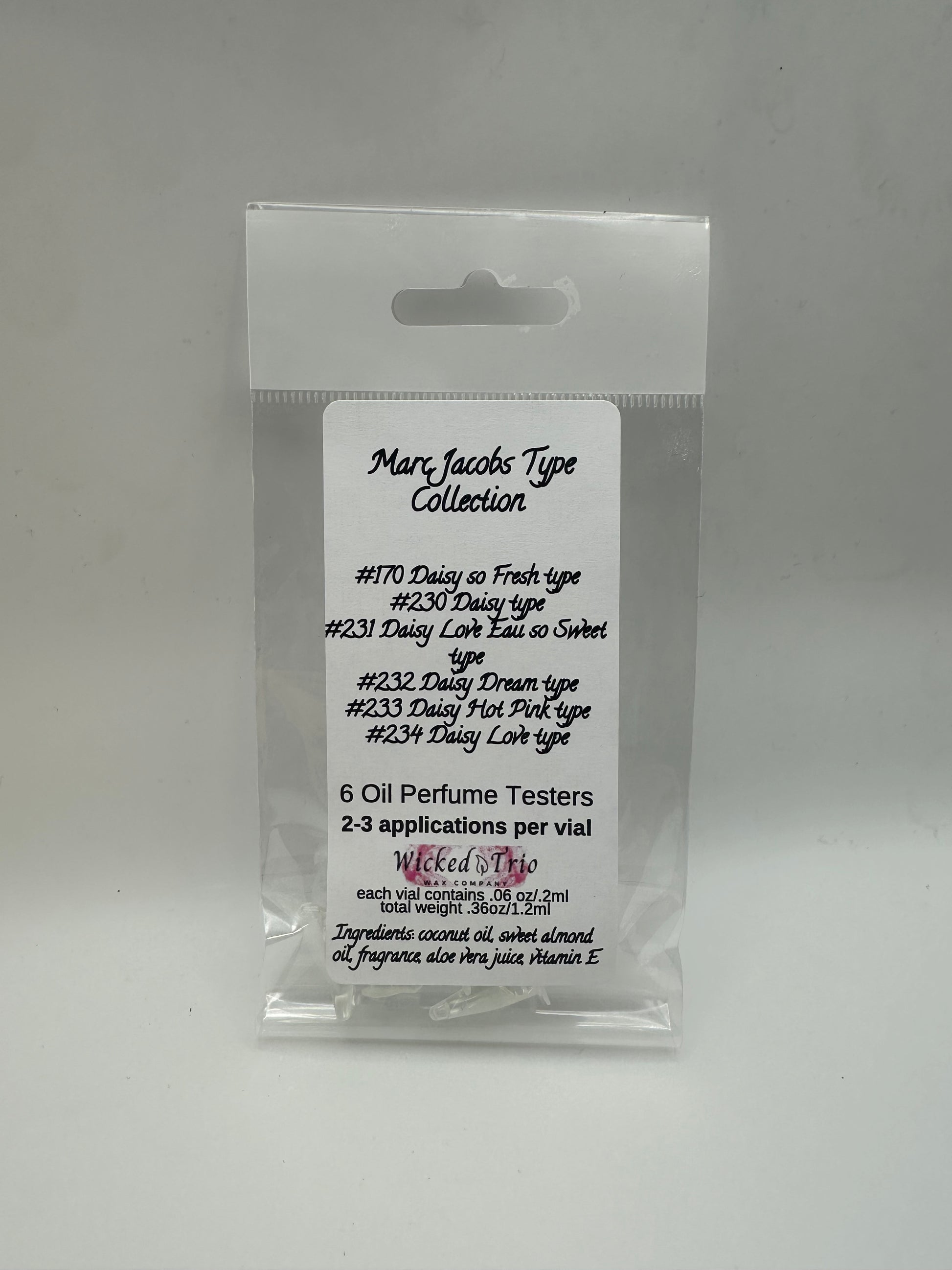 Our collections include all of the scents that we own from that brand. We made these so you can sample our scents and see what you like without spending money on full size products.