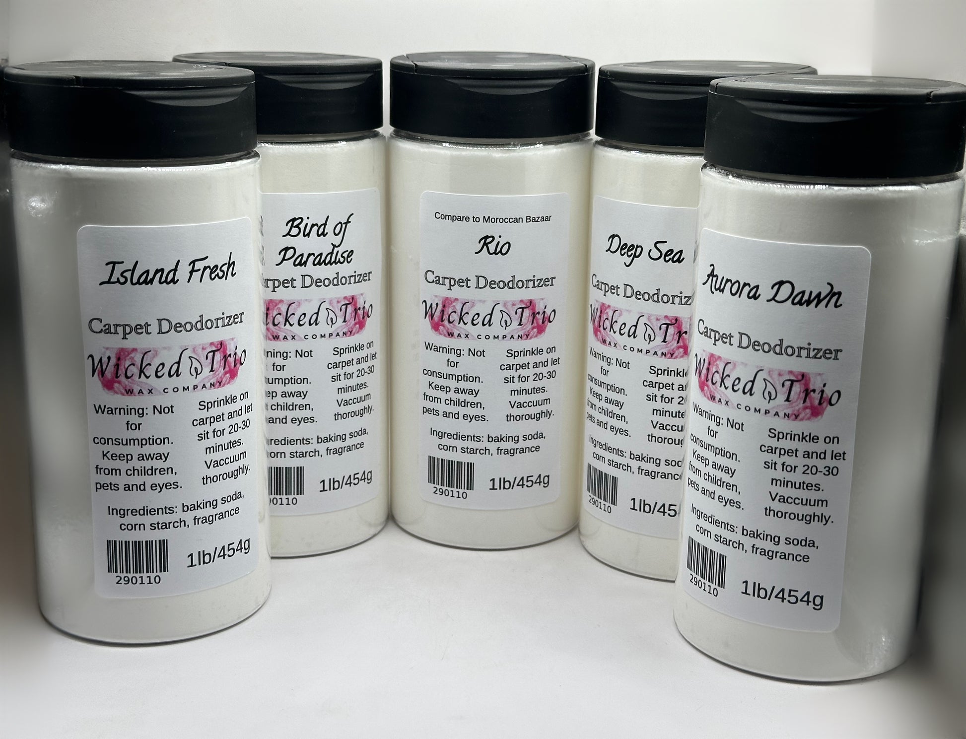 Our carpet deodorizers are designed to effectively eliminate most embedded odors while leaving your home smelling fresh and inviting. We offer a wide variety of fragrances, allowing you to choose the scent that best suits your space. Each deodorizer is formulated with the maximum amount of fragrance permitted while still remaining completely safe for everyday use.